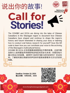 For sixteen years, the OCCA Communities Association (OCCA) has helped preserve and share the histories of Chinese and Asian communities in the Okanagan—through AHM History Online and the annual Asian Heritage Exhibition at the downtown Kelowna library each May. This new phase builds on that foundation and opens the door for wider public participation.
